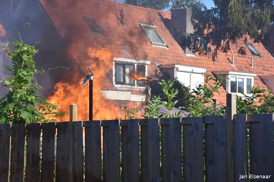Een buurman is onmiddellijk gaan blussen met de tuinslang terwijl een ander 112 belde.