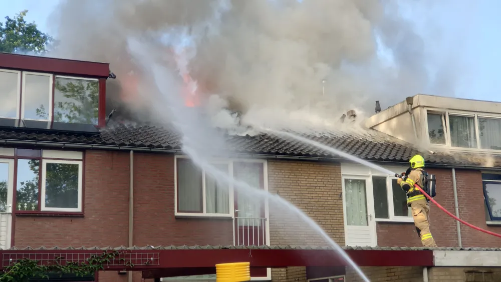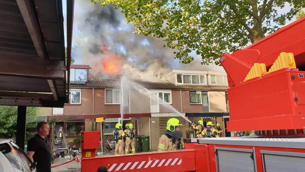 Bij een felle brand in een woning aan de Tarthorst waarbij de vlammen uit het dak sloegen zijn drie woningen tijdelijk onbewoonbaar geworden.