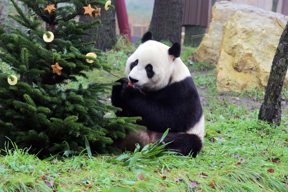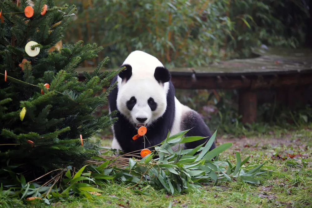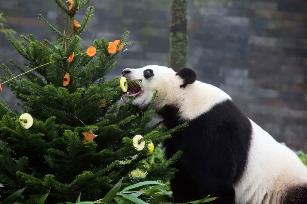 Op donderdag 21 december zijn de reuzenpanda’s Xing Ya en Wu Wen en de ara's in Ouwehands Dierenpark getrakteerd op een winterse traktatie.