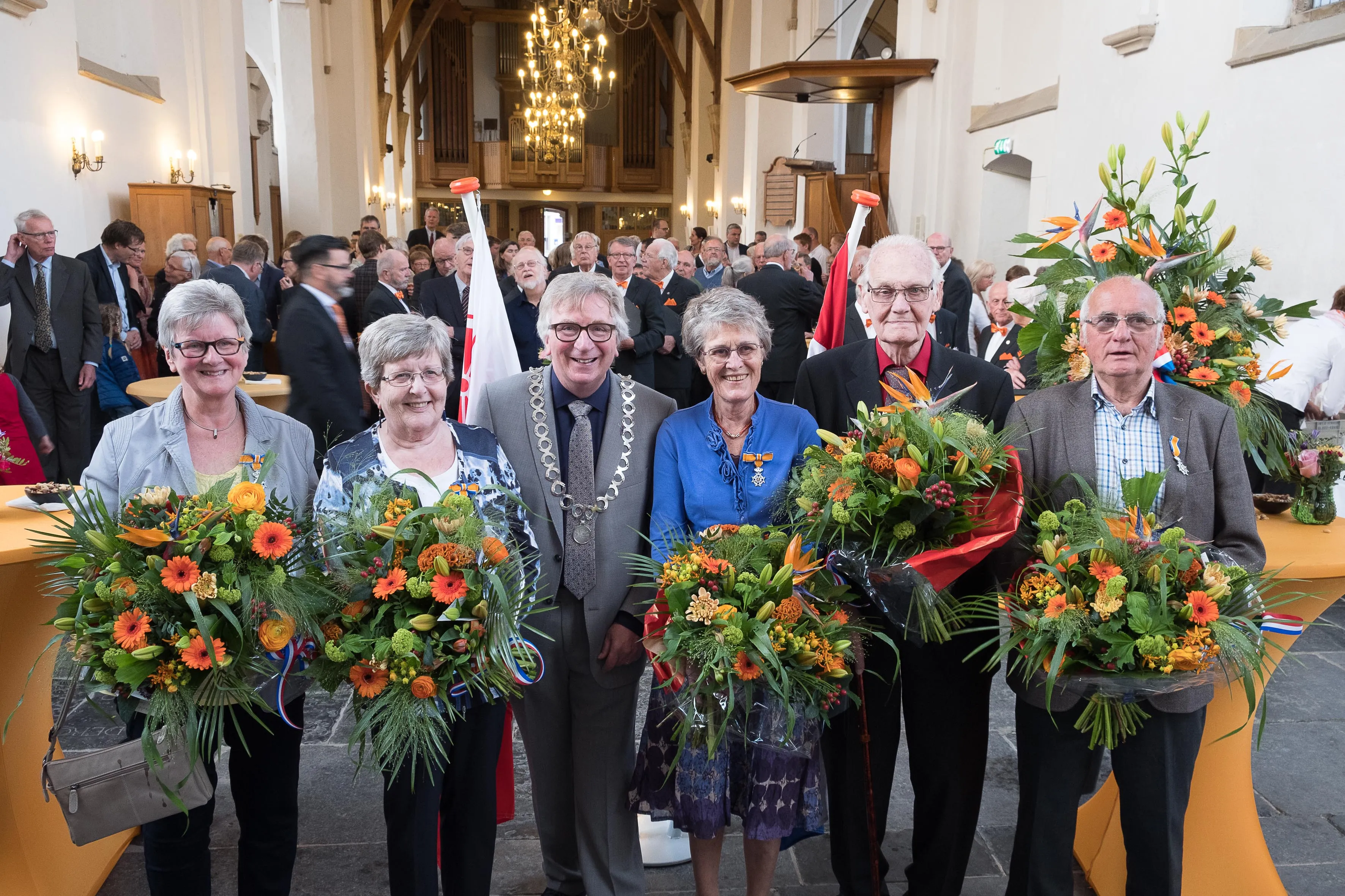 Ter gelegenheid van de jaarlijkse lintjesregen reikte burgemeester Geert van Rumund vijf koninklijke onderscheidingen uit op donderdag 26 april in de Grote Kerk op de Markt te Wageningen.