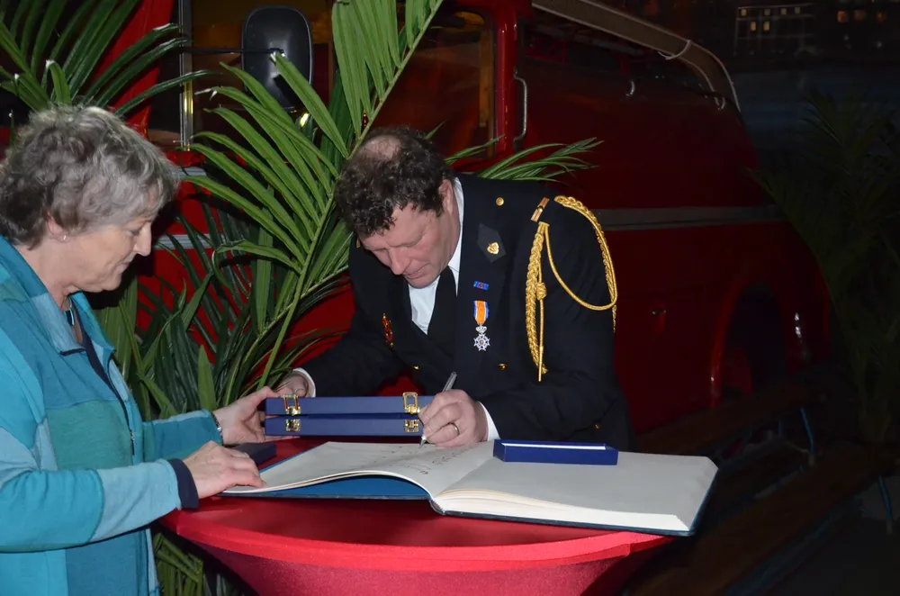 "Je moet altijd bereikbaar zijn. Je kan niet te ver van huis. Je hebt altijd je pieper bij je. En als ie afgaat sta je eigenlijk in no-time voor de samenleving klaar." zegt burgemeester van Rumund. Prachtig om hen zo eens in het zonnetje te zetten vindt hij. Als extraatje heeft hij voor de nieuw gedecoreerden een klein boekje over de geschiedenis van de Nederlandse Ridderorde bij zich.