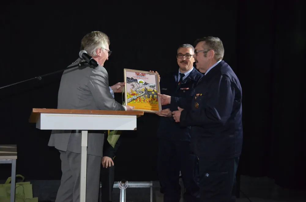 15 oorkondes werden er als eerste uitgereikt deze avond, aan een aantal oud-gedienden en nog steeds in dienst zijnde. Meer dan 20 jaar zetten zij zich, of hebben zij zich ingezet voor de vrijwillige brandweer. De oorkonde is gemaakt door Henk van Ruitenbeek en op naam gesteld (zie foto's).