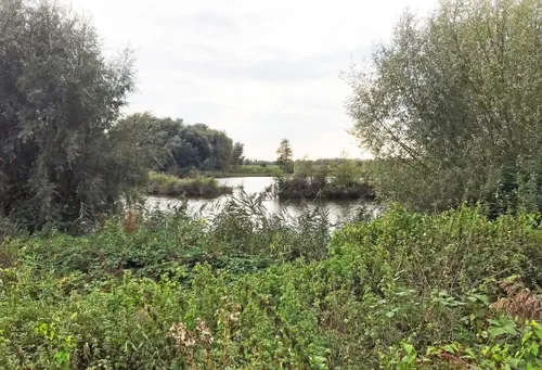 die zijn ontstaan door vroegere kleiwinning en er is de Rijn. De gids vertelt