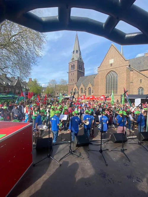 het in goede banen leiden van de mars; FNV voor het leveren van podia,